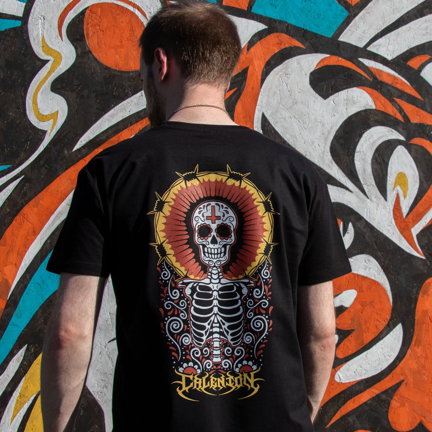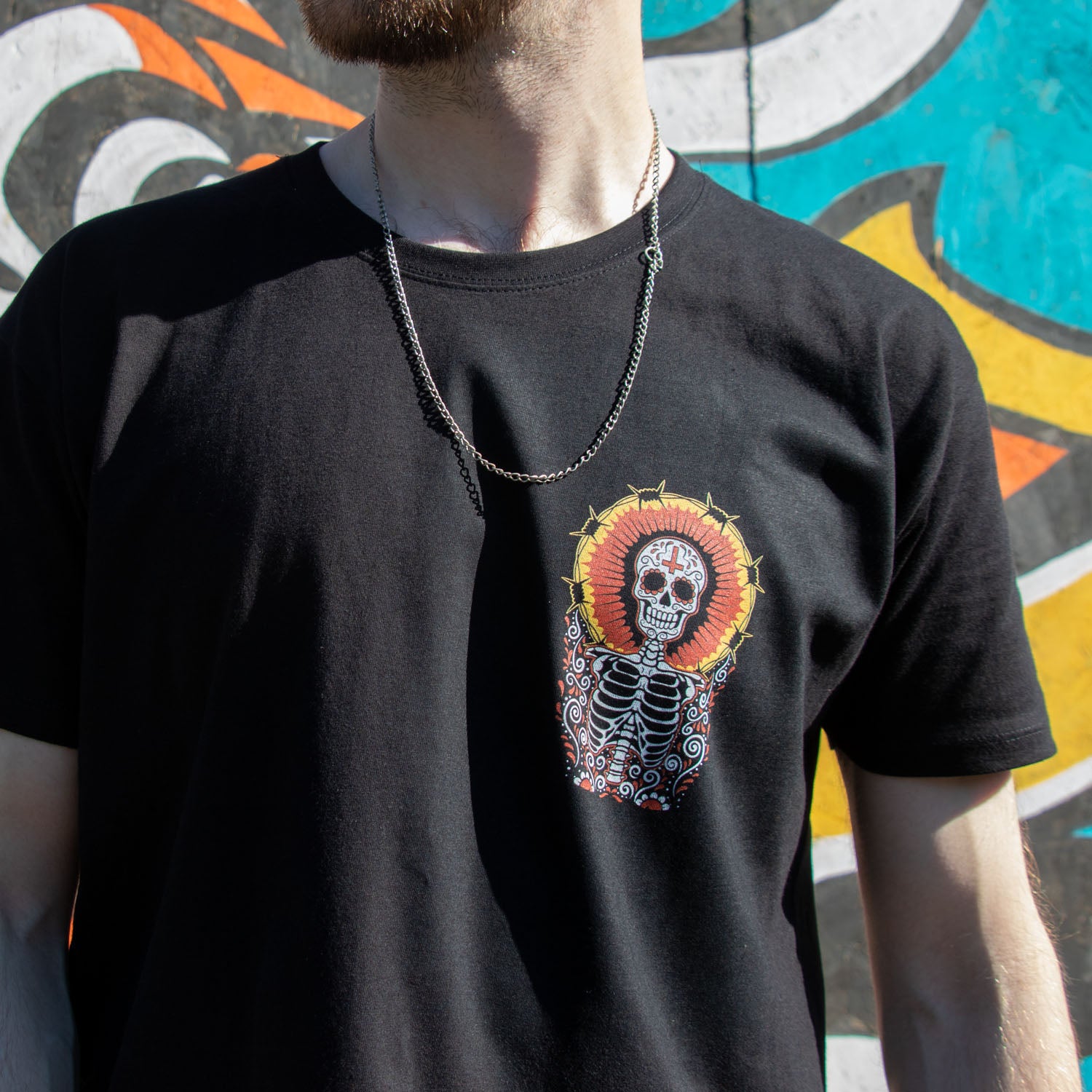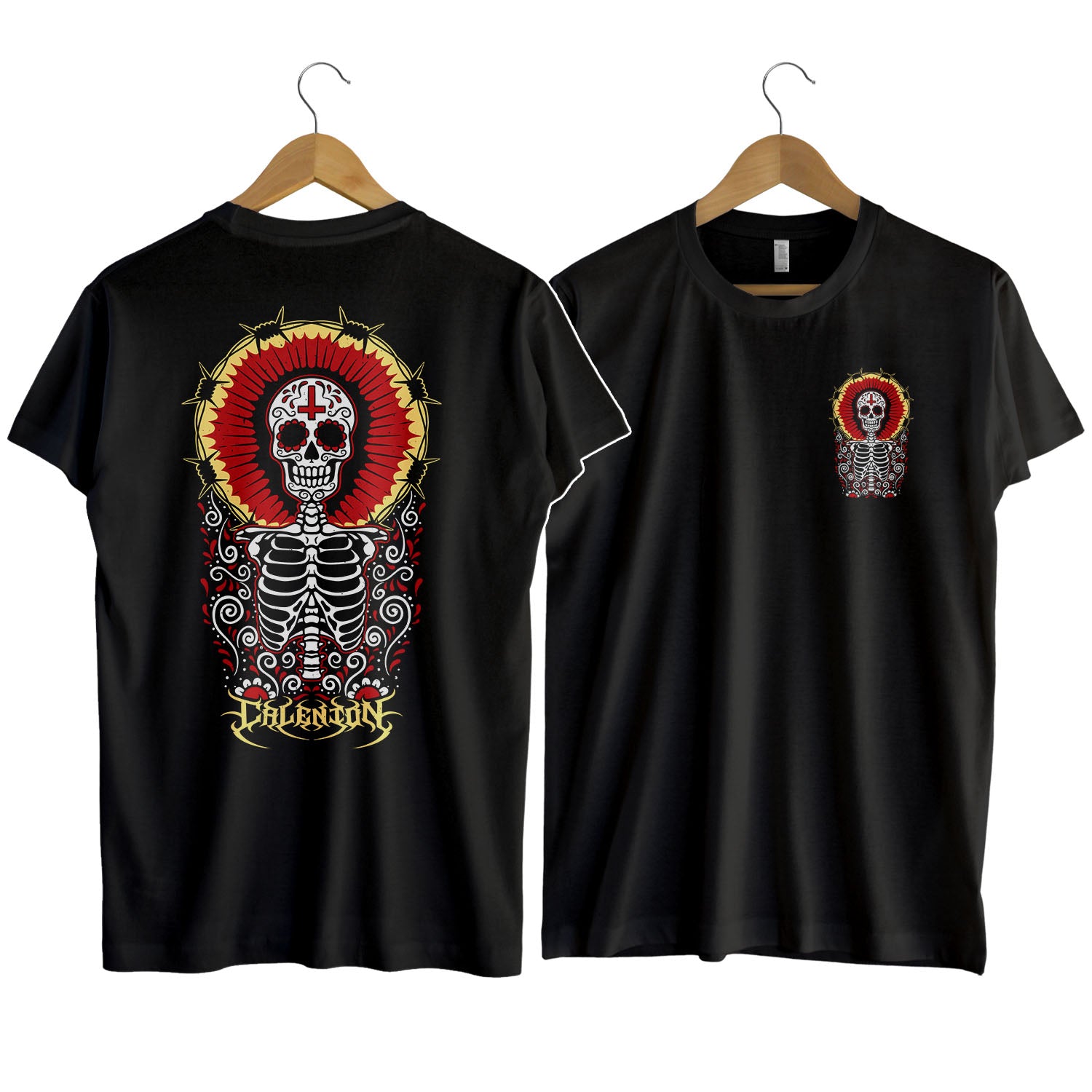 A design perfect for spooky season, blending themes of Día de los Muertos with tattoo artwork.