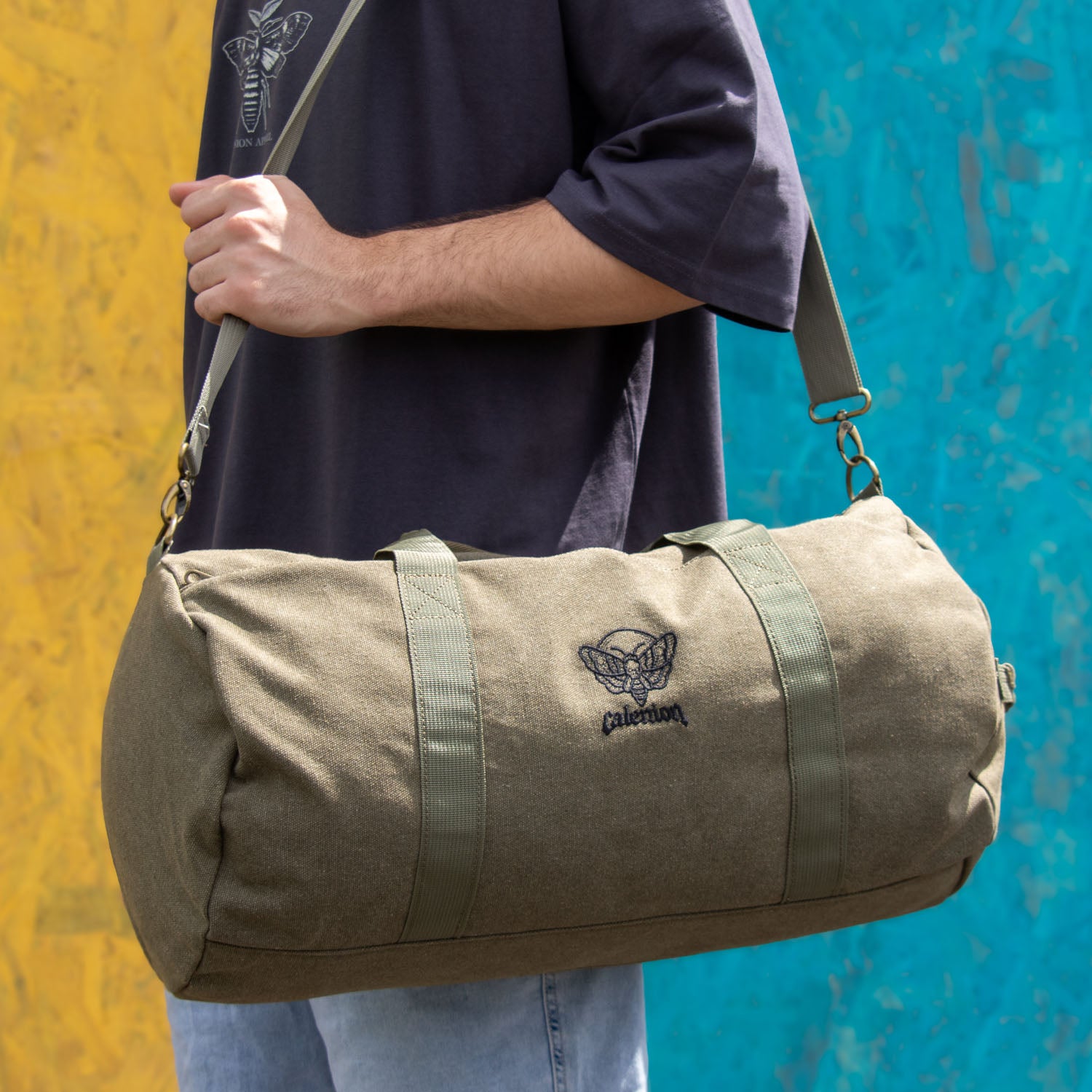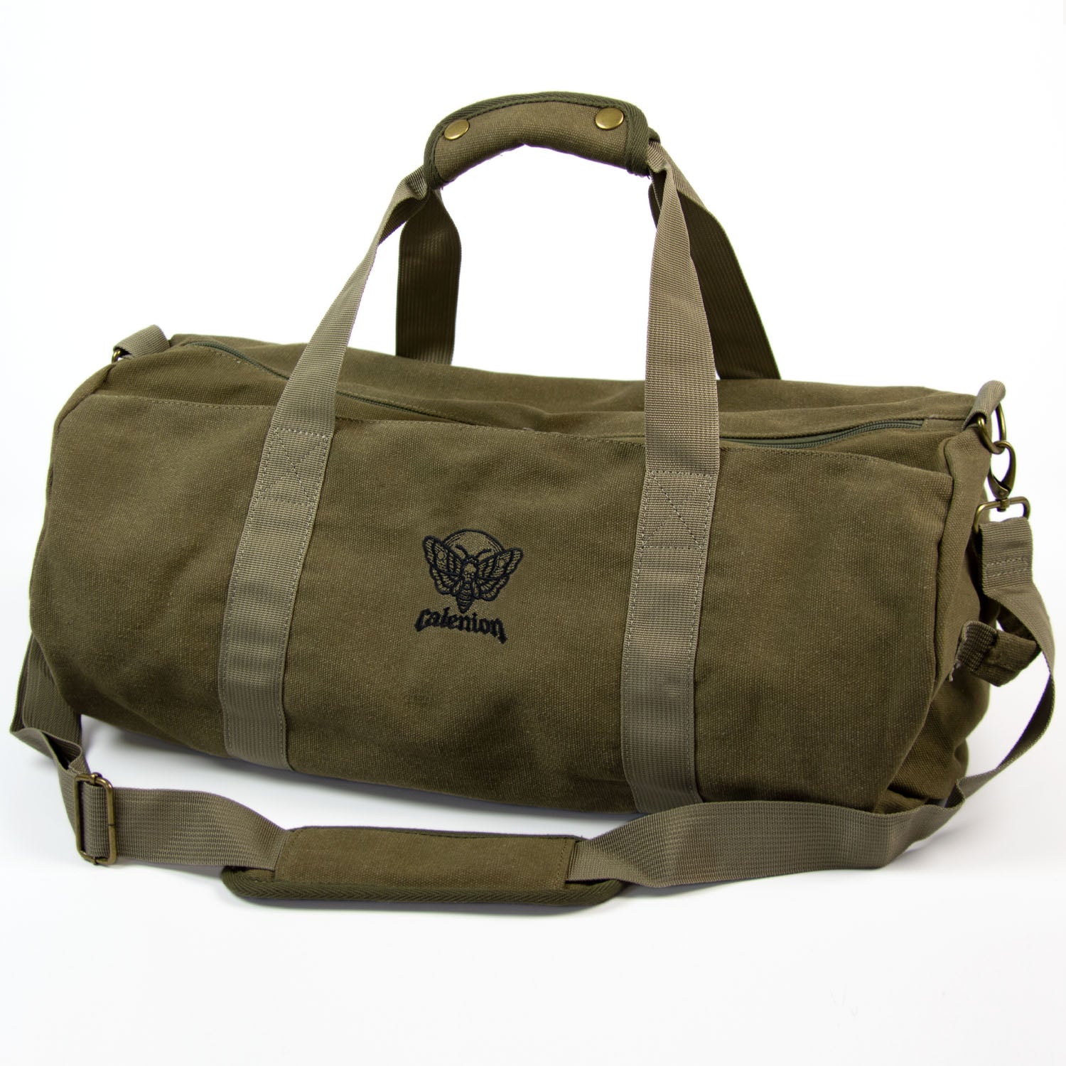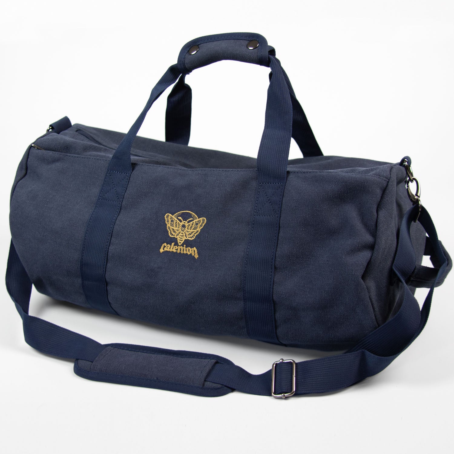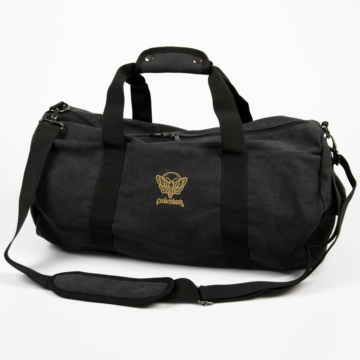 Add some style to your workout and gym wear with this Death Moth vintage washed canvas barrel bag.