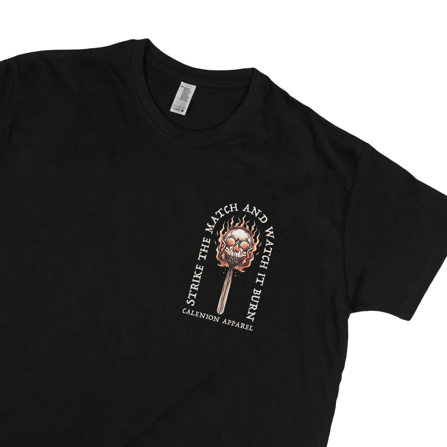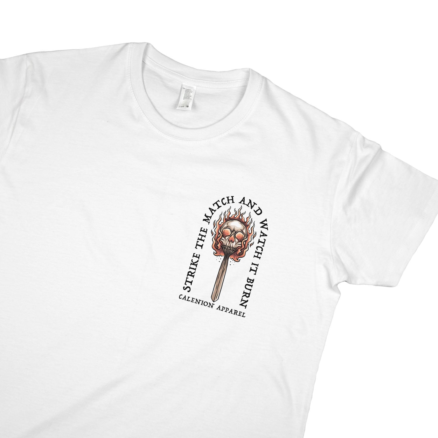 Strike the match and watch it burn. A pocket print design featuring a match head skull.
