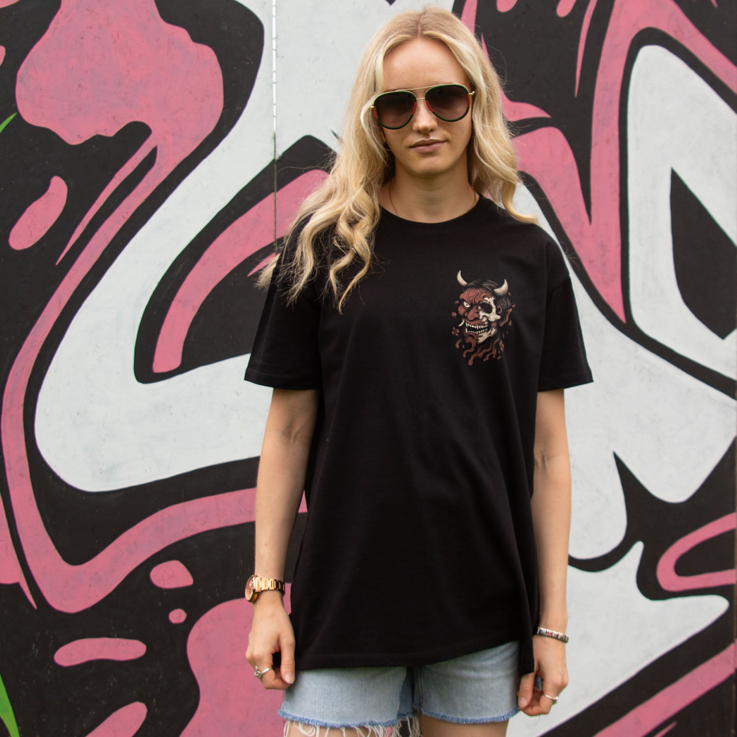 A Japanese inspired design featuring a symbiotic hannya taking over its host.