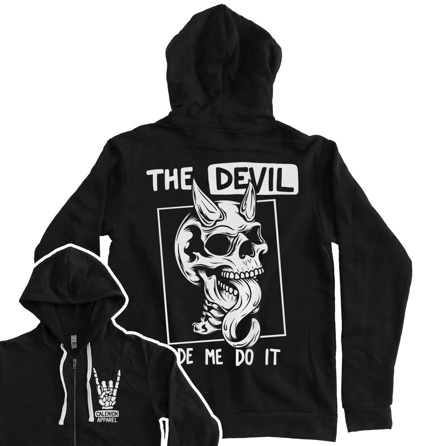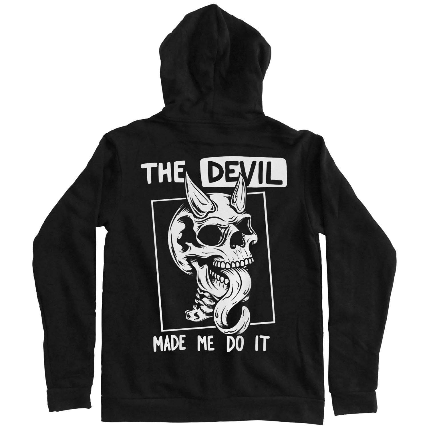 - The Devil Made Me Do It design printed on the back of the hoodie