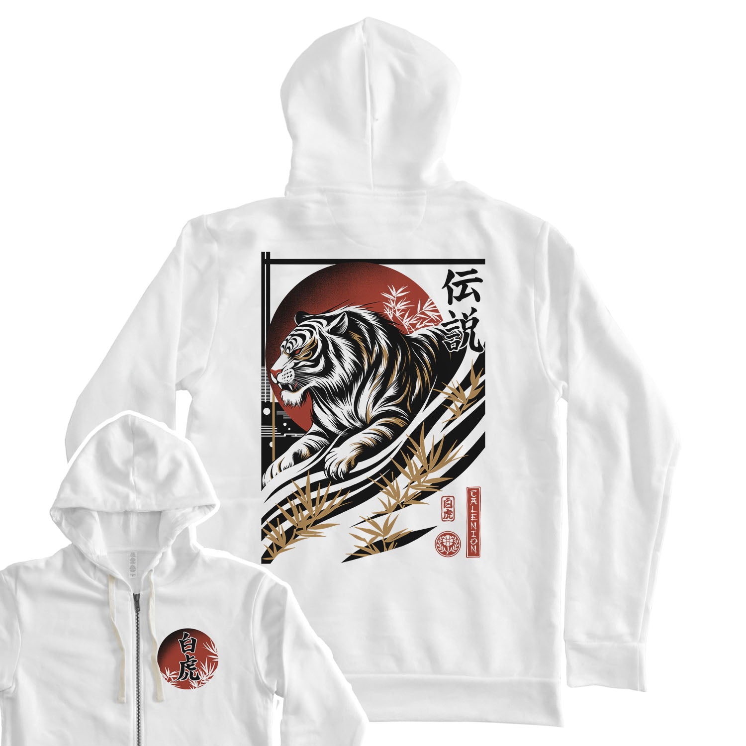 White Tiger Zip Hoodie